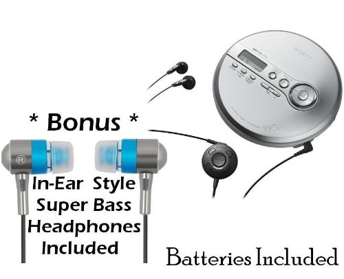 Sony Walkman Portable All-in-one MP3 / Skip-Free CD Player / Digital FM Radio Tuner with Remote Control, Earbud Headphones, 40 preset FM stations, Digital Mega Bass Sound, AVLS & CD-R/RW MP3 Playback + BONUS Secure-Fit Super Bass Metallic Earphones (Blue) * Batteries Included * Review